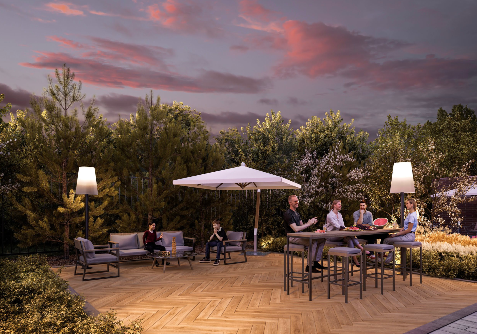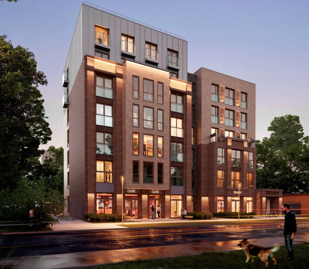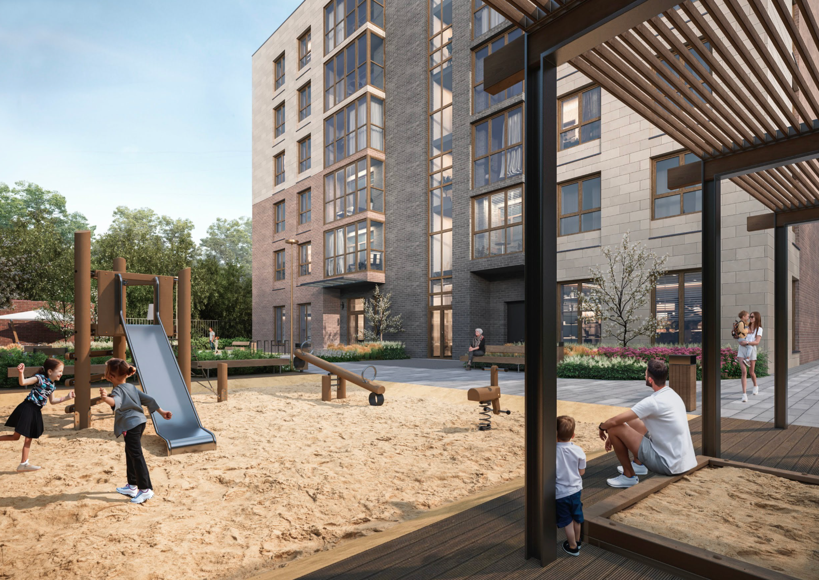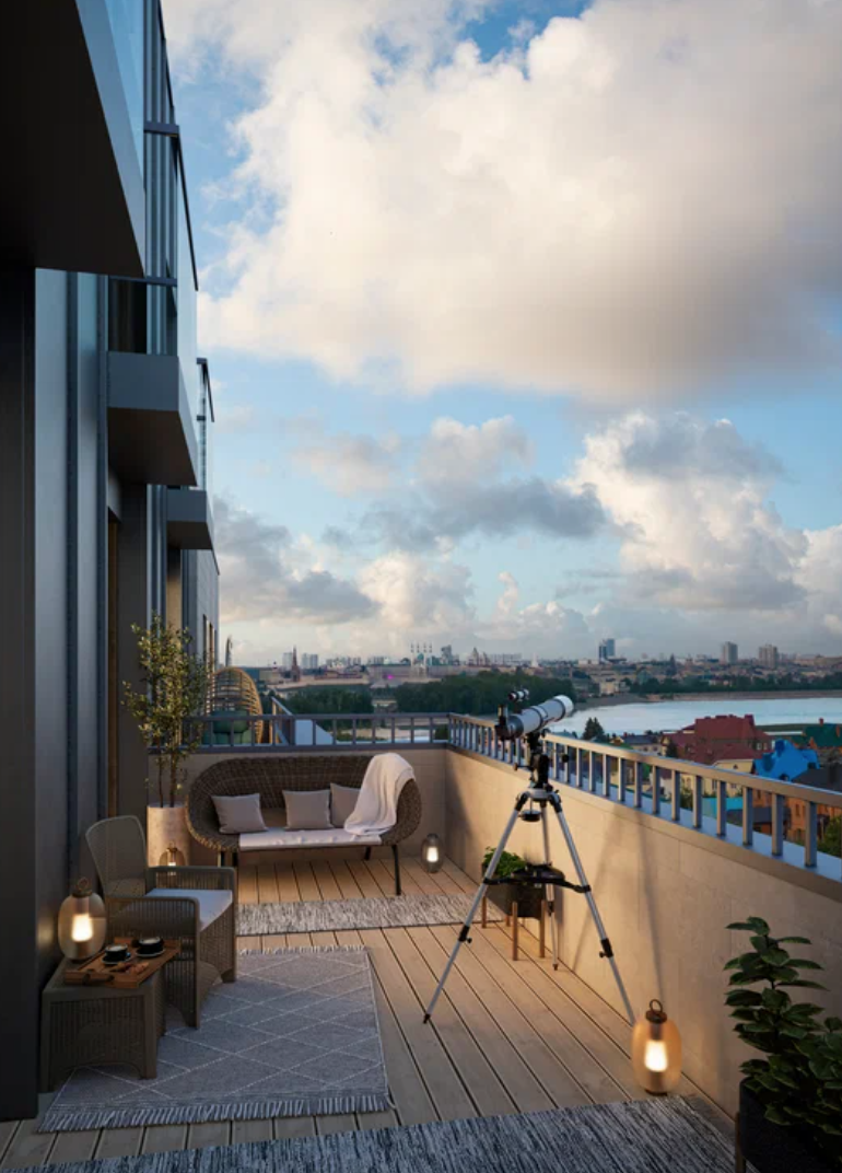 В 3–5 минутах ходьбы от комплекса находятся больница № 2, поликлиническое отделение № 3, парк им. Николая Столярова, сквер «Сад Рыбака», супермаркеты «Магнит» и «Пятёрочка». В 10–15 минутах — Татарская гимназия № 15, школа № 32, академия тенниса Шамиля Тарпищева, детский сад № 30.