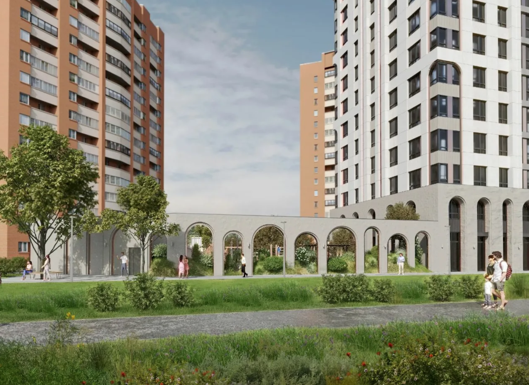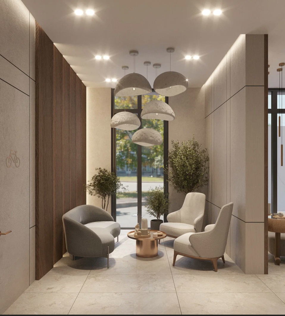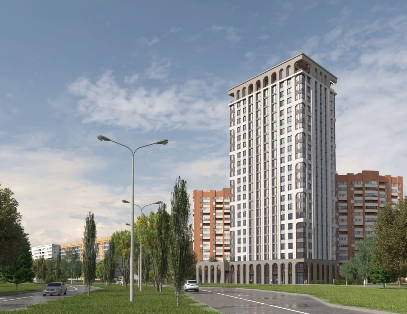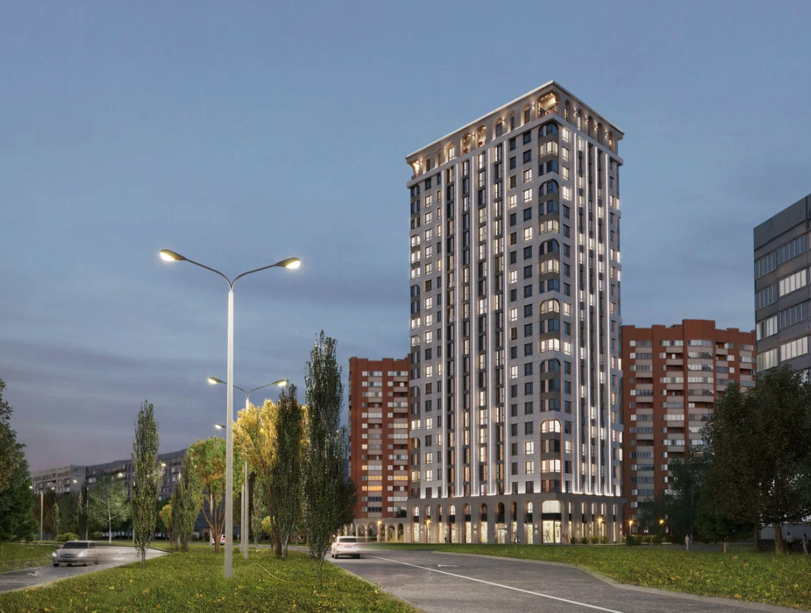 Комплекс состоит из 22 этажей и построен с использованием высококачественного красно-керамического кирпича, а его фасад украшен композитными материалами и натуральной медью с роскошной подсветкой.
