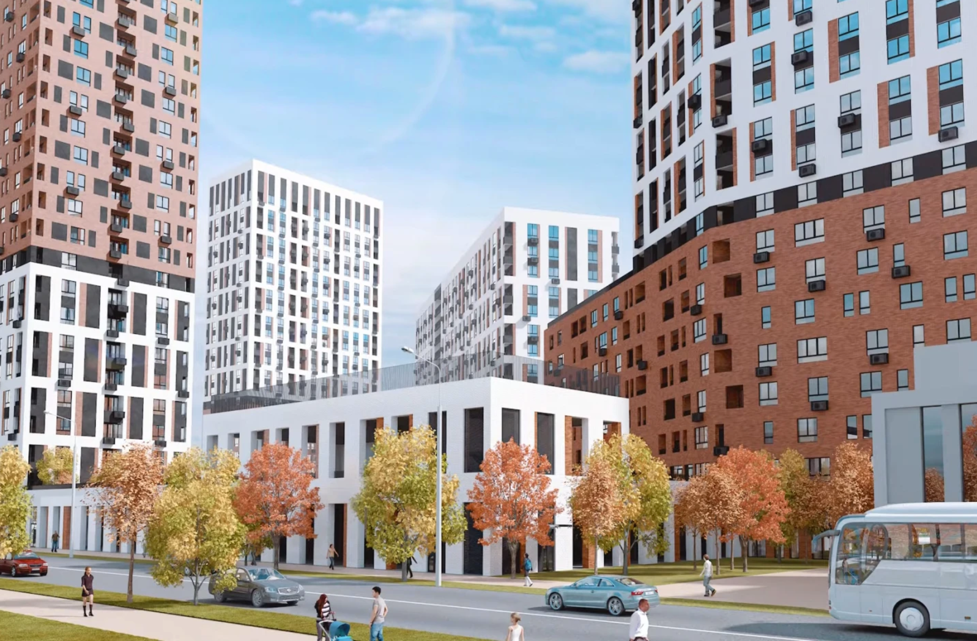 Большая внутренняя территория жилого комплекса станет вашим любимым местом для отдыха: дворовое пространство оборудовано скамейками с подогревом сидений и зарядками для гаджетов,пешеходными дорожками, детскими игровыми площадками, зонами для занятий спортом и футбольным полем.