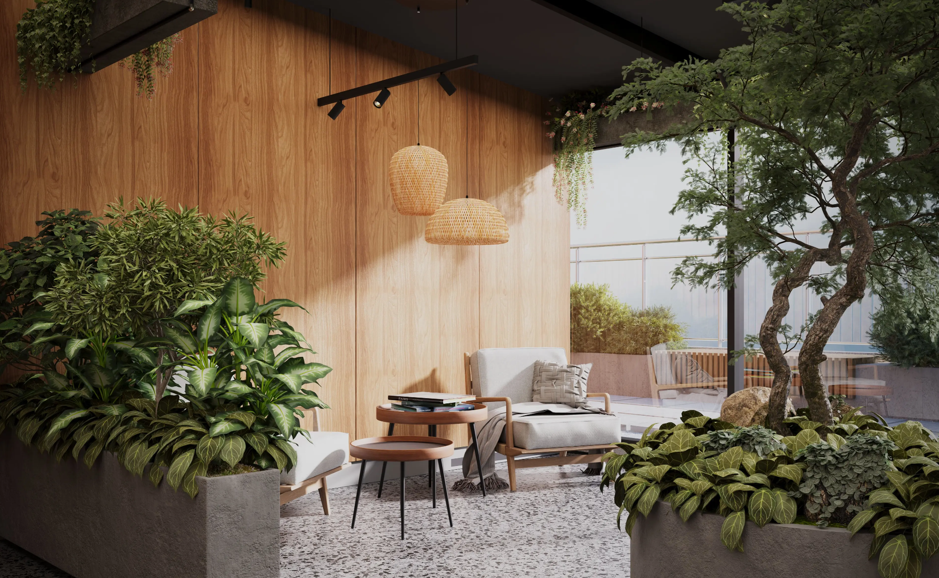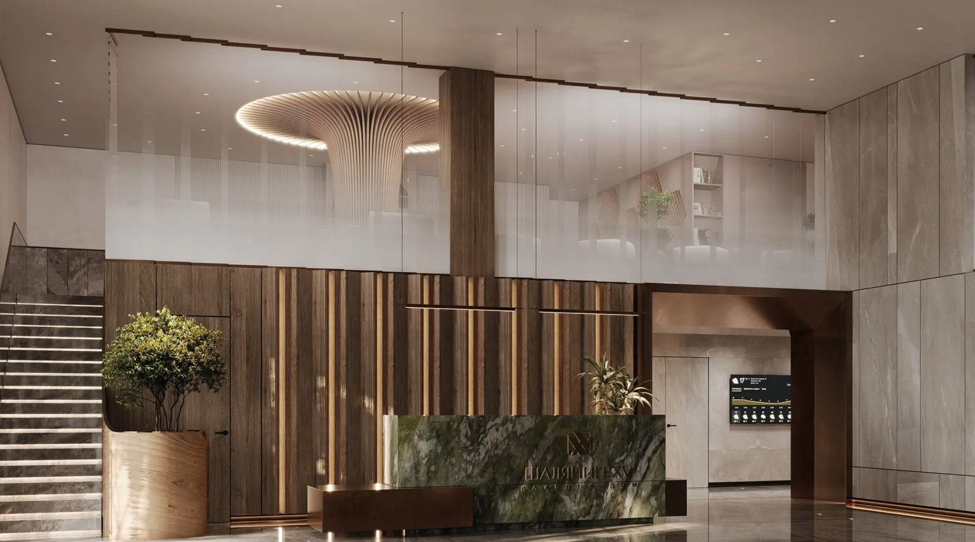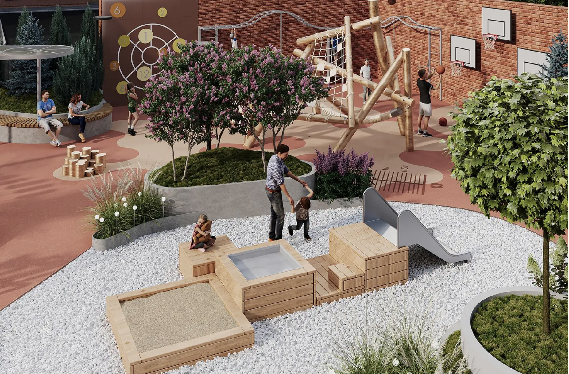 Внутри комплекса есть множество удобств, включая собственный кинотеатр, зимний сад, детские и спортивные зоны, а также коворкинг и комнаты для занятий с репетиторами.