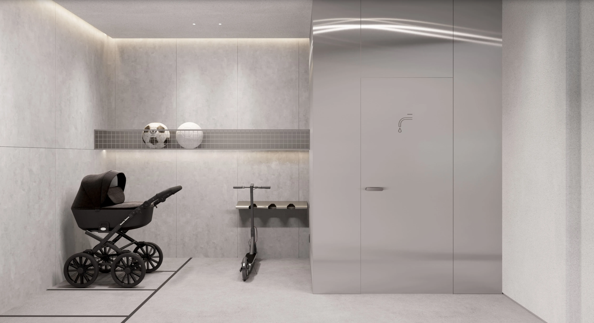На территории комплекса запланированы подземная парковка на 23 места, закрытый двор с детской площадкой и садом с зонами для отдыха. В здании будет дизайнерское лобби с зоной ожидания и гостевым санузлом, также спроектированы многофункциональный арт-зал, колясочные помещения.